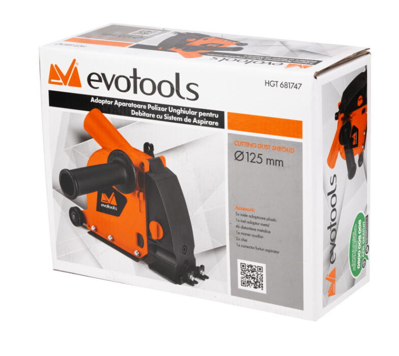 Transforma-ti polizorul unghiular intr-o masina de debitat de inalta precizie cu ajutorul adaptorului special EvoTools. Proiectat pentru discuri de 125 mm, acest accesoriu robust din otel si plastic dur ofera solutia ideala pentru taierea materialelor de constructii, eliminand aproape complet praful datorita sistemului eficient de aspirare integrat. Este unealta perfecta pentru lucrarile de interior unde curatenia si vizibilitatea asupra liniei de taiere sunt esentiale.