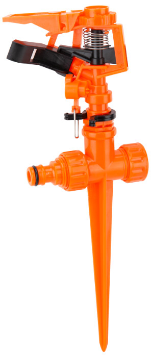 Aspersorul Pivotant cu Impuls 2012 este un dispozitiv de udare care permite stropirea suprafetelor de pana la 314 m 2 . Acesta este realizat din material plastic rezistent la distrugere (ABS). Este un dispozitiv de udare eficient si puternic, proiectat pentru a acoperi zone mari de teren cu apa intr-un mod precis si eficient. Specificatii: Este realizat din material plastic rezistent la distrugere (ABS) Permite stropirea suprafetelor de pana la 314 m 2 la o presiune de lucru cuprinsa intre 4-6 bar Are o raza de stropire de 10 m si un debit maxim de 14.8 L/min Constructia in forma de tija ii permite plasarea usoara in gazon fara a il deteriora