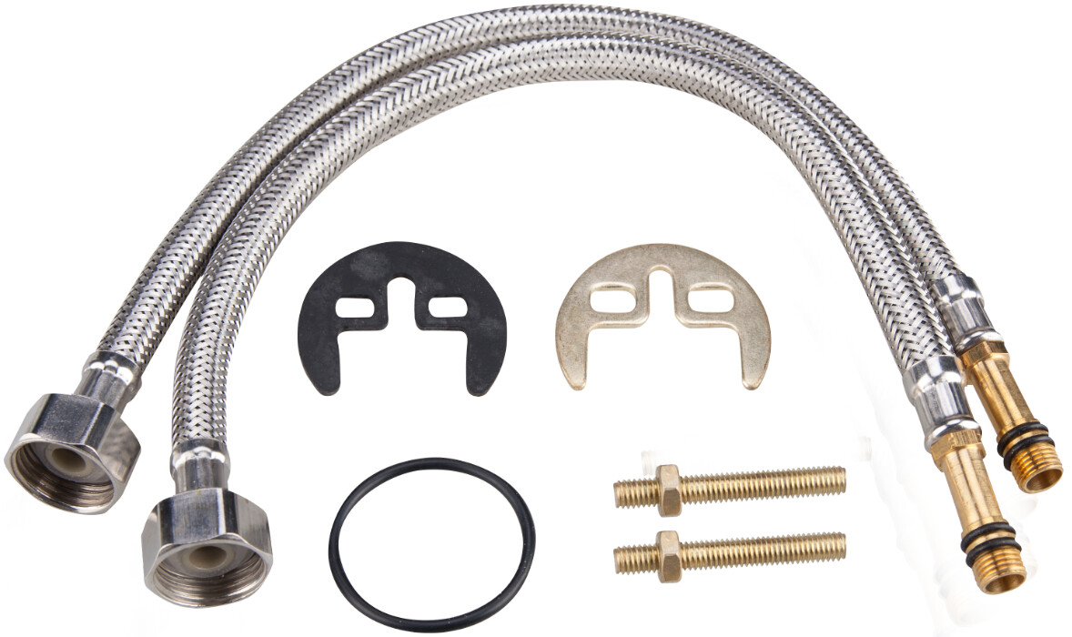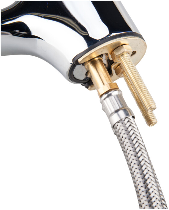 Bateria este echipata cu un cartus ceramic cu diamterul de 40 mm, o garnitura din cauciuc de 48 mm in diametru si 2 racordui flexibile cu o lungime de 350 mm.