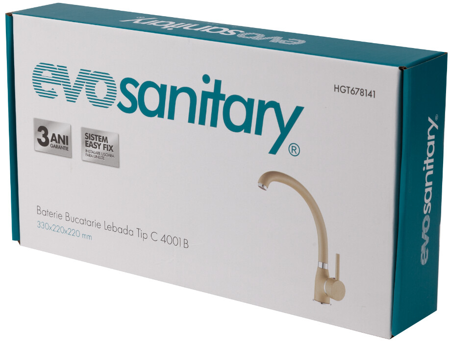 Bateria de bucatarie tip lebada ofera un mediu de lucru mai destins prin forma arcuita pe care o detine.Aceasta este echipata cu un cartus ceramic cu diamterul de 40 mm, o garnitura din cauciuc si 2 racordui flexibile cu o lungime de 350 mm.