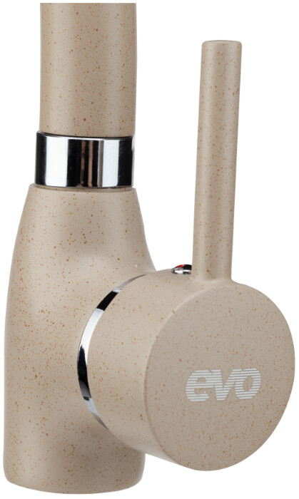 Bateria EVOSANITARY de tip monocomanda are corpul confectionat din alama cu un finisaj facut prin vopsire in camp electrostatic.