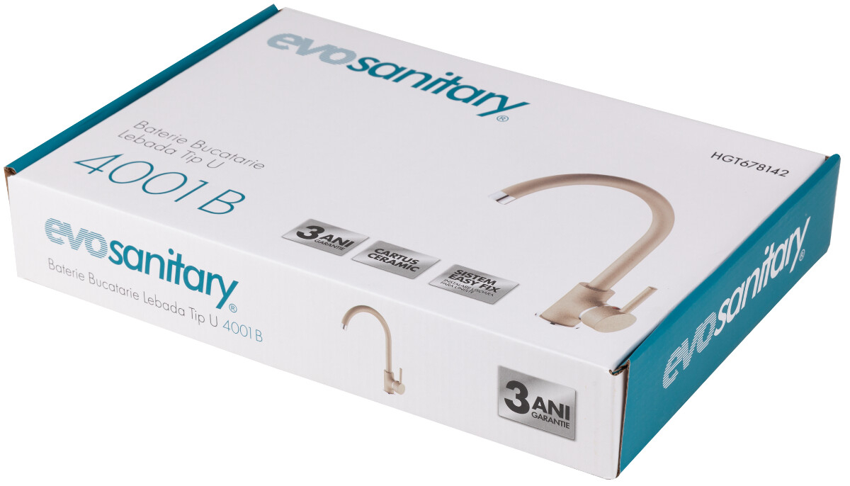 Bateria de bucatarie tip lebada ofera un mediu de lucru mai destins prin forma arcuita pe care o detine.Aceasta este echipata cu un cartus ceramic cu diamterul de 40 mm, o garnitura din cauciuc si 2 racordui flexibile cu o lungime de 350 mm.