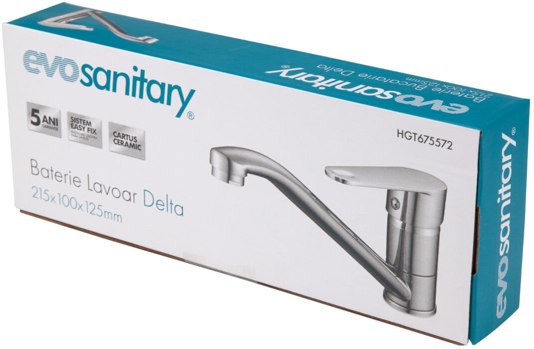 Bateria este echipata cu un cartus ceramic cu diamterul de 35 mm, o garnitura din cauciuc si 2 racordui flexibile.