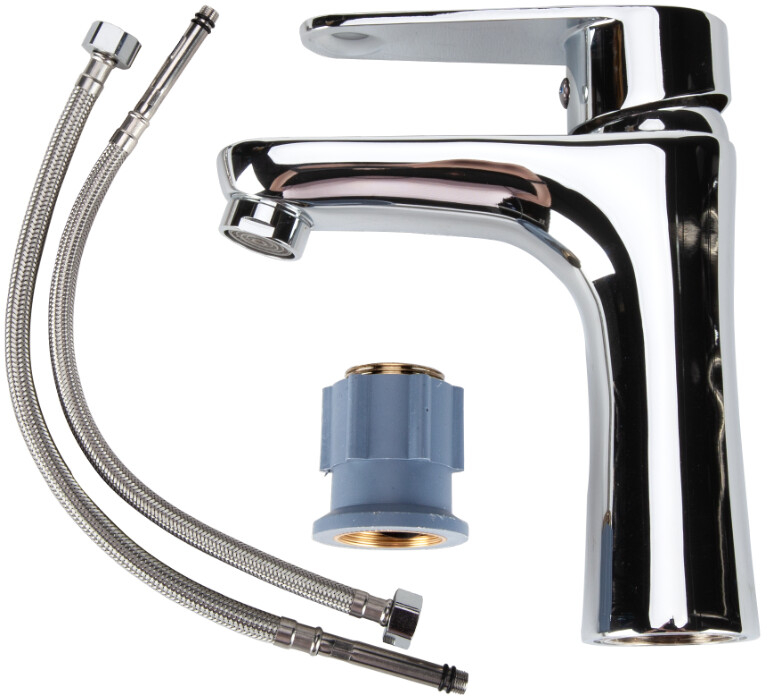 Aceasta este de tip monocomanda si are corpul confectionat din alama, cu un finisaj lucios de culoare arginitie.