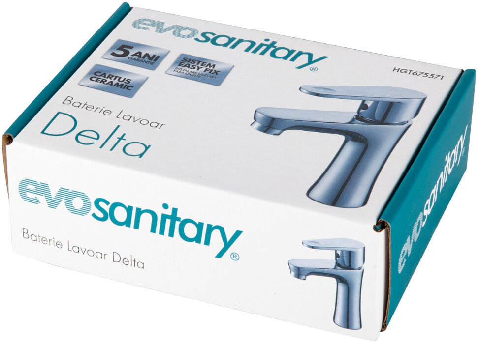 Bateria este echipata cu un cartus ceramic cu diamterul de 35 mm, o garnitura din cauciuc si 2 racordui flexibile cu o lungime de 400 mm.