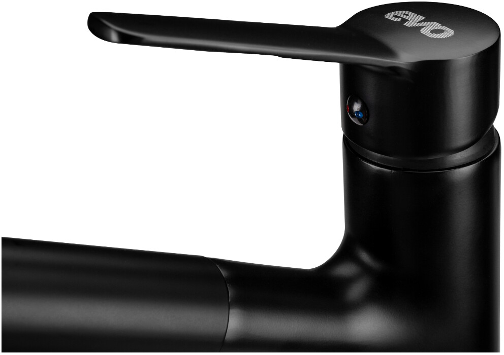 Bateria monocomanda EVOSANITARY are corpul confectionat din otel inoxidabil 305, cu un finisaj negru mat. Manerul de actionare al cartusului este confectionat din aliaj de zinc.