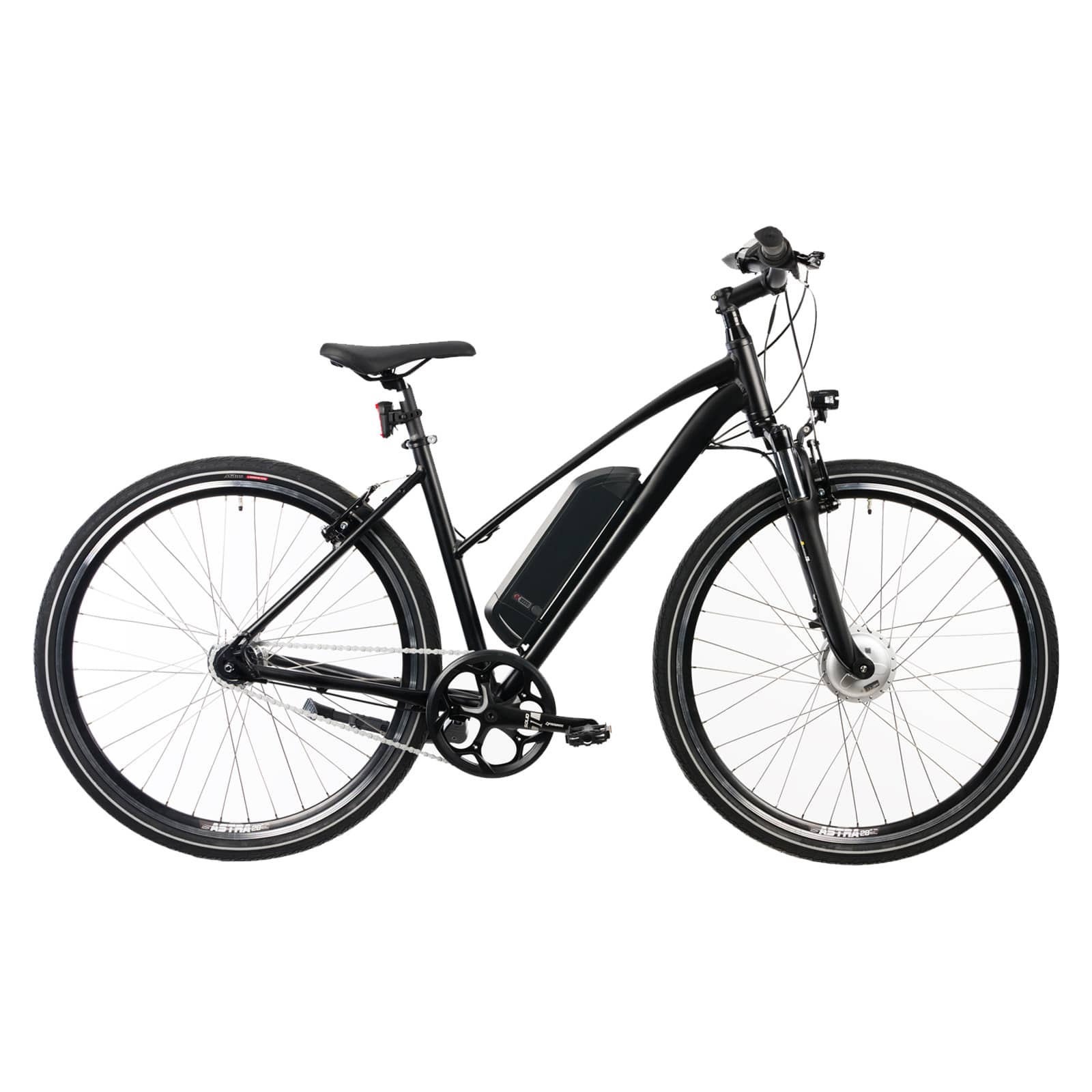 Bicicleta Electrica 28174 V-brake - 28 InchAceasta bicicleta electrica eleganta imbina perfect performanta superioara cu un design modern, fiind ideala pentru orice tip de calatorie. Cu roti de 28 de inch, bicicleta ofera o rulare lina si stabila, indiferent de terenul pe care circulati. Sistemul de franare V-Brake asigura o franare eficienta si siguranta, in timp ce cadrul din aluminiu, rezistent si durabil, garanteaza o utilizare pe termen lung.Este echipata cu un acumulator de 11 Ah care asigura o autonomie generosa, permitandu-va sa parcurgeti distante mai lungi fara griji. Furca are o cursa de 45 mm, absorbind eficient socurile si imbunatatind confortul in timpul calatoriilor. Cu o putere a motorului de 250 W, bicicleta atinge o viteza maxima de 25 km/h, fiind ideala pentru naveta zilnica sau plimbari relaxante.Transmisia cu 1 x 7 viteze ofera flexibilitate si control sporit asupra vitezei, in timp ce designul elegant se potriveste perfect cu tehnologia avansata, aducand un plus de confort si stil in fiecare calatorie.