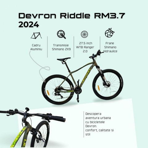 Bicicleta Mtb Devron Riddle RM3.7 2024 - 27.5 Inch este alegerea perfecta pentru ciclistii care doresc o combinatie de performanta, confort si durabilitate. Fie ca explorezi trasee montane sau te aventurezi pe drumuri de tara, acest model te va sustine in fiecare calatorie.