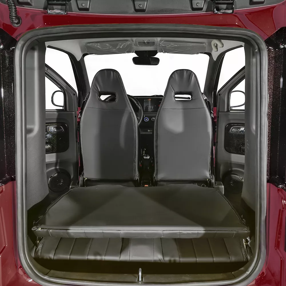 Vehiculul este dotat din constructie cu 4 locuri, insa omologate sunt doar 2 locuri. Astfel, bancheta din spate se poate rabata, iar spatiul obtinut poate fi utilizat ca si spatiu de depozitare.