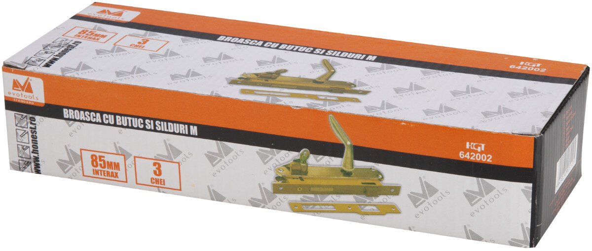 Broasca cu Cilindru si Silduri EvoTools este confectionata din otel carbon de cea mai buna calitate, avand suprafata finisata si acoperita cu un strat de zinc. Acest tip de broasca poate fi montata atat la usile de la intrare, pentru a asigura securitatea locuintei dumneavoastra sau a incintei de depozitare, cat si la usile interioare. Boltul de inchidere cu arc este reversibil, fara a fi nevoie sa se demonteze carcasa. astfel incat aceasta broasca sa poate fi folosita si pentru usi cu inchidere pe dreapta, dar si pentru usi cu inchidere pe stanga. Broasca vine impreuna cu un cilindru centrat cu profil european, confectionat din alama, cu lungimea de 60 mm. Distanta interax este de 85 mm, avand o adancime de montare de 65 mm.