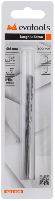 Burghiul Beton EvoTools este adecvat pentru gaurire in zidarie si beton. Acesta poate fora eficient gauri in beton datorita varfului de centrare activ pentru taiere activa in beton. Spirala prevede eliminarea corespunzatoare a materialului excavat, prevenind supraincalzirea burghiului si infundarea gaurii cu reziduuri de gaurire.