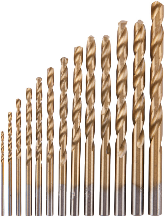 Burghiu din otel rapid de inalta performanta, acoperit cu nitrura de titan. Rezistenta la tractiune < 900N/mm²