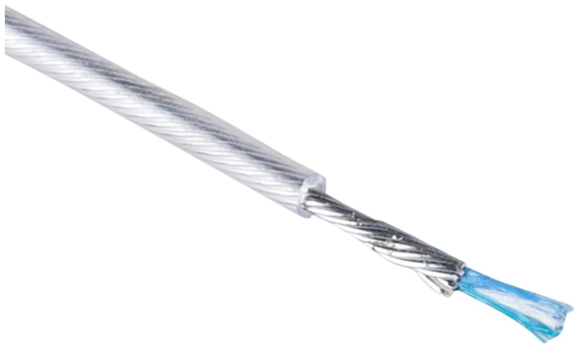 Cablu din otel zincat acoperit cu PVC transparent pentru o protectie suplimentara, poate fi utilizat in gospodarii pentru ancorari diverse (prelate, copertine, obiecte usoare), uz gospodaresc sau ansambluri decorative.