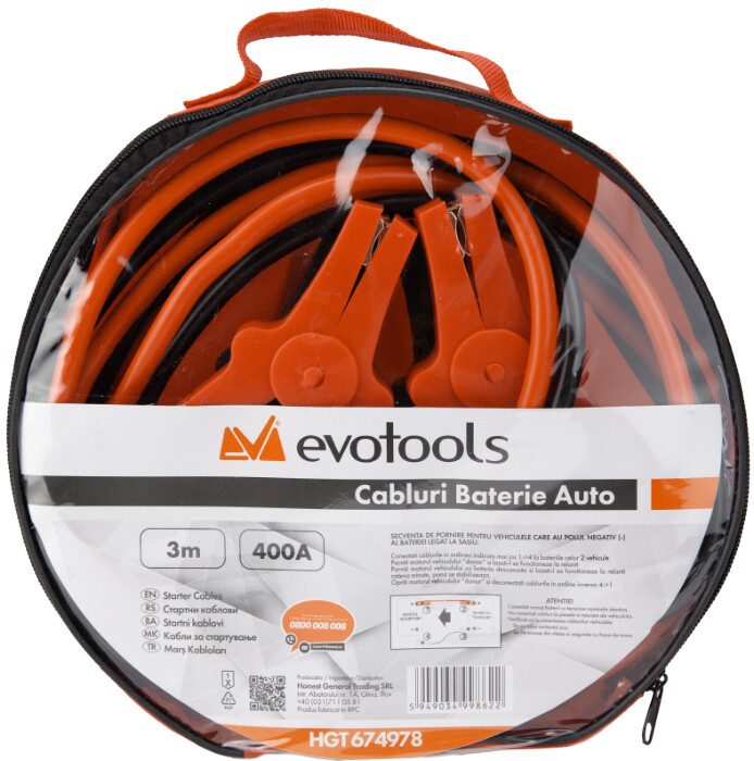 Set compus din doua cabluri izolate, cu cleme metalice si protectie plastic Curent maxim acceptat 400 A.