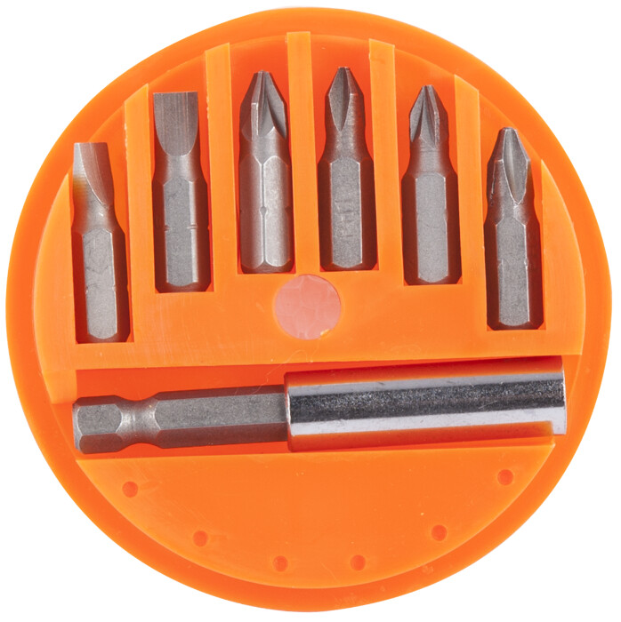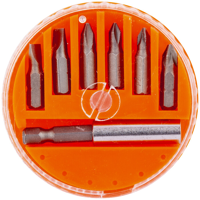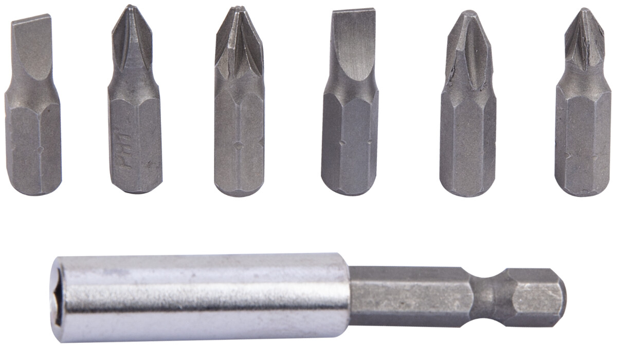 Capetele surubelnita sunt confectionate din ote carbon tratat termic. Prelungitorul are o lungime de 60 mm. Atat prelungitorul cat si capetele surubelnite sunt magnetice, oferind astfel o buna fixare.