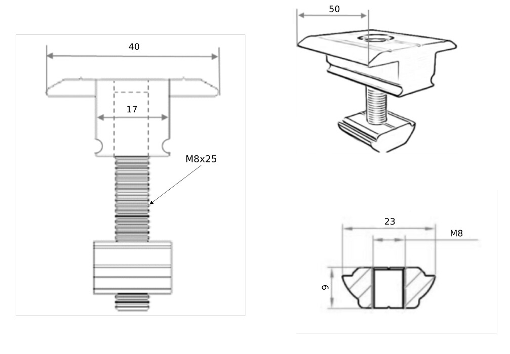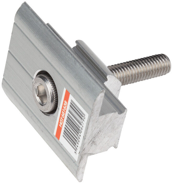 Pentru montajul sistemelor de panouri fotovoltaice aveti nevoie de accesorii si sisteme de prindere confectionate din aluminiu. Clema intermediara (de mijloc) EvoTools este confectionata din aluminiu AL6005-T5, avand suruburile de fixare confectionate din SS304. Aceasta clema este folosita pentru fixarea a doua panouri dintr-o serie de panouri fixate pe profilul din aluminiu.
