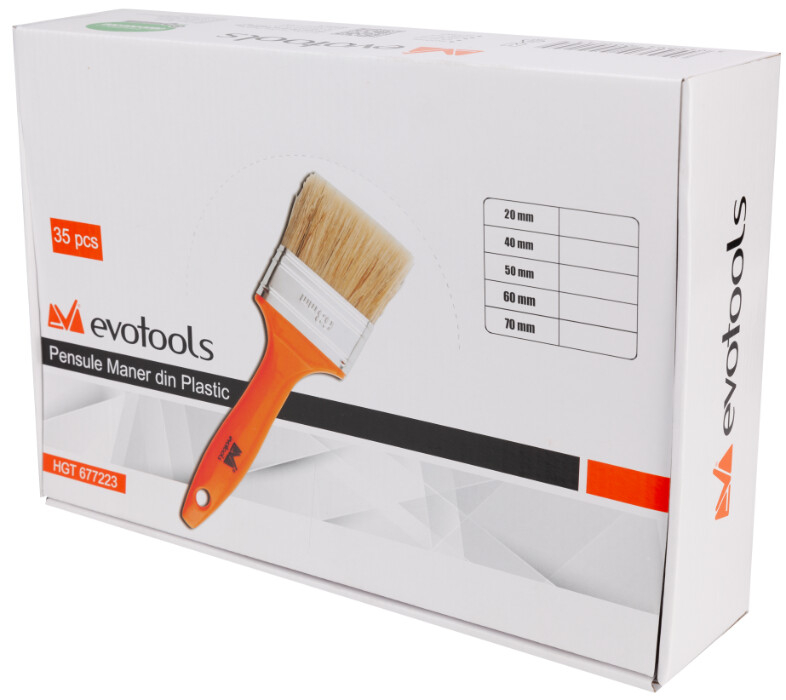 Setul de pensule cu maner din plastic multifunctionale marca EvoTools va ofera o acoperire uniforma a suprafetelor pe care doriti sa le vopsiti si o acuratete de vopsire axcelenta cu orice tip de vopsea.