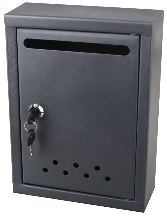 Cutia postala tip CP1B EvoTools este confectionata din tabla de otel, acoperita cu un strat protector de vopsea. Aceasta prezinta usa de vizitare frontala, securizata cu incuietoare. Cutia postala are o fanta in partea superioara, cu latimea de 14 mm pentru introducerea corespondentei si fanta de vizualizare a interiorului. Dimensiuni 195x260x76mm.
