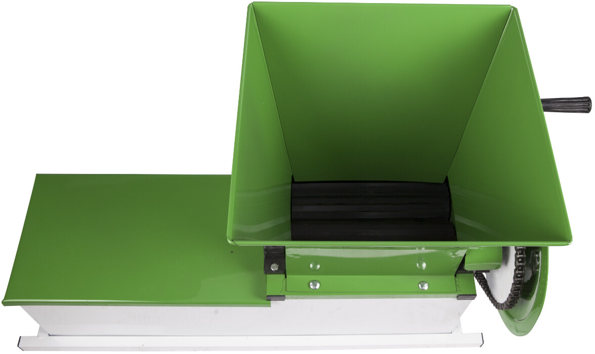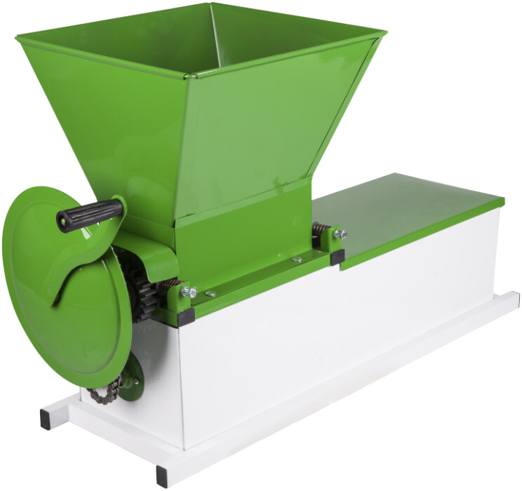 Zdrobitorul cu Desciorchinator Manual marca Evotools este un echipament utilizat in gospodarie pentru obtinerea mustului. Acesta zdrobeste strugurii cu ajutorul celor doua role din aluminiu, iar separarea boabelor de ciorchine o face cu ajutorul axului cu palete din otel. La final boabele sfaramate cad prin orificiile sitei, iar ciorchinii raman in interiorul acesteia fiind eliminati prin evacuarea frontala.