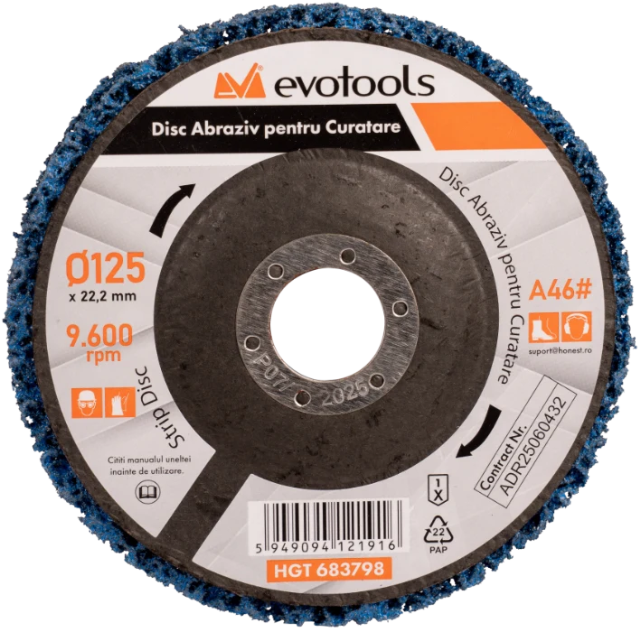 Acest disc abraziv , este solutia ideala pentru o gama larga de aplicatii, de la slefuirea grosiera la pregatirea suprafetelor pentru vopsire. Fabricat din carbura de siliciu de inalta calitate si cu un corp din fibra de sticla, indeparteaza rugina, murdaria din piesele metalice, curata si lustruieste diferite tipuri de suprafete.