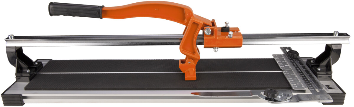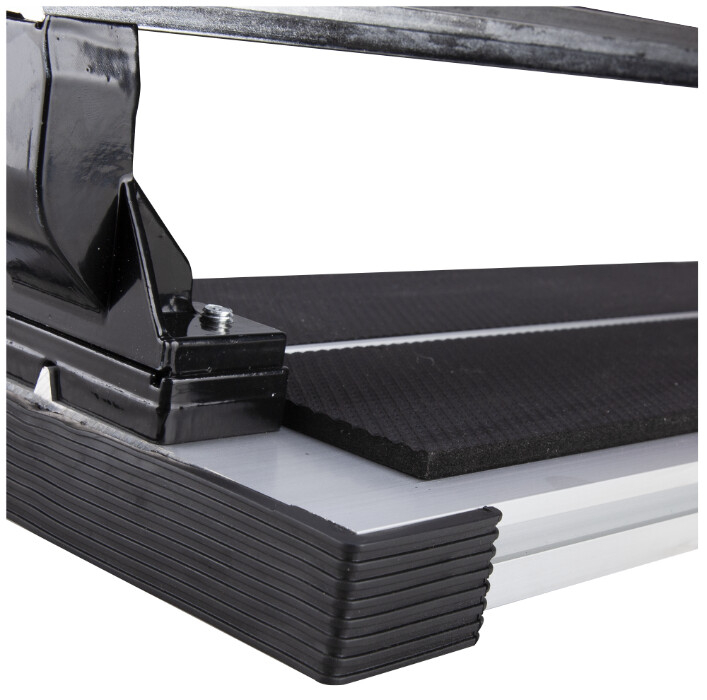 Ghidajul central este confectionat din otel cromat cu profil rectangular, iar manerul ergonomic culiseaza usor pe acesta datorita rulmentului, oferind astfel stabilitate si usurinta in utilizare, fara a se deforma in timpul taierii placilor groase.