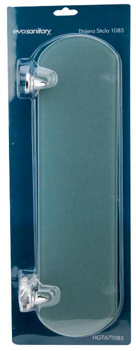 Realizata din alama cromata si polita din sticla. A nu se lasa la indemana copiilor! Contine parti ce pot fi usor inghitite sau pot provoca accidente!