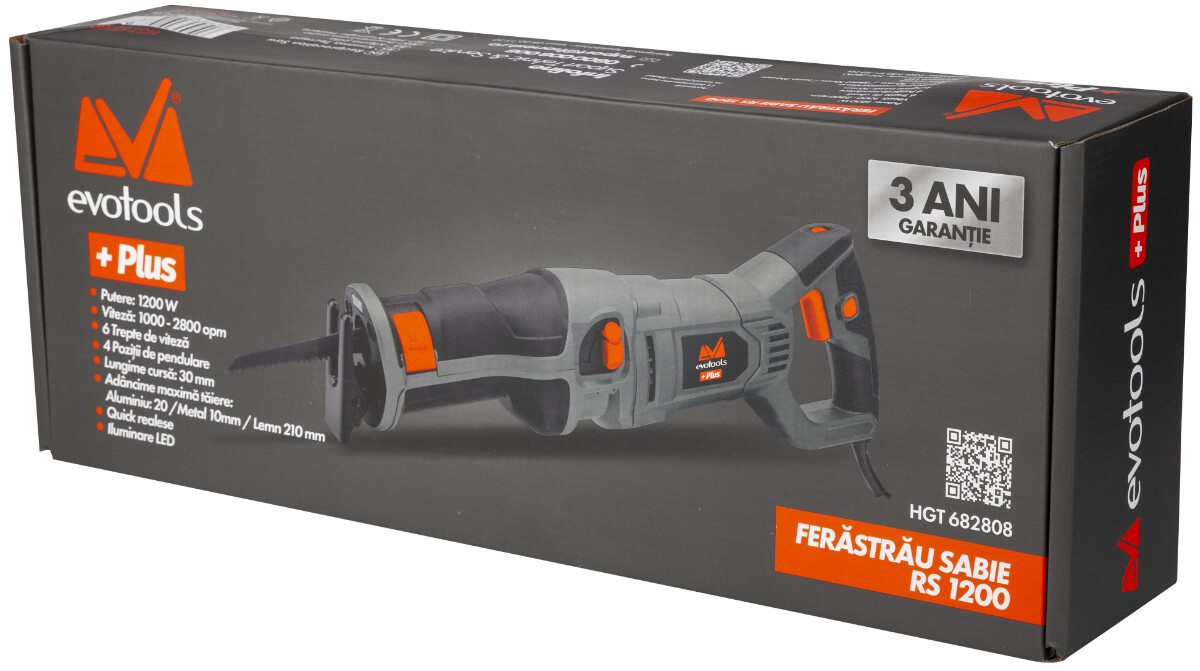 Ferastraul Sabie RS 1200 Evotools Plus este destinat uzului personal pentru operatiile de taiere a corpurilor din lemn si metal.