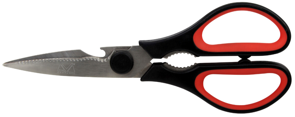 Marca Evotools Professional reprezinta gama de scule si unelte destinata micilor mesteri, avand o calitate superioara ceea ce le face a fi destinate uzului semi-profesional. Foarfeca multifunctionala este un instrument de taiere versatil si util, care integreaza mai multe functii si caracteristici intr-un singur dispozitiv. Aceasta foarfeca este proiectata pentru a face fata unei game variate de sarcini, inclusiv taierea, deschiderea, decuparea sau ruperea anumitor materiale. Este o unealta foarte practica pentru utilizarea zilnica in gospodaria dumneavoastra. Specificatii: Lama este confectionata din inox cu o duritate cuprinsa intre 48-50 HRC, avand suprafata lustruita. Manerul este format din polipropilena si cauciuc termoplastic (TPR) de inalta calitate. Are 3 functii de taiere.