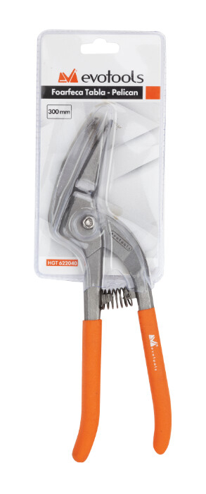 Marca Evotools Professional reprezinta gama de scule si unelte destinata micilor mesteri, avand o calitate superioara ceea ce le face a fi destinate uzului semi-profesional. Foarfeca de taiat tabla "Pelican" este un instrument specializat utilizat pentru taierea si prelucrarea foilor de metal sau tabla. Are o forma specifica, cu partea taietoare inclinata spre stanga, care permite taierea precisa a metalelor, precum otelul, aluminiul sau alte aliaje. Specificatii: Lama este confectionata din otel tratat termic, cu o duritate cuprinsa intre 52-56 HRC. Manerul este fabricat dintr-un cauciuc moale prevazut cu suprafata antialunecare. Foarfeca este inclinata spre stanga.