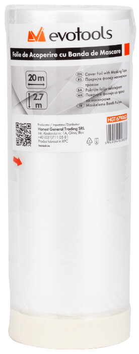 Folia de acoperire cu banda de mascare este o combinatie intre folie de acoperire din polietilena de mare densitate si banda adeziva de hartie usor creponata, utilizata in mascarea suprafetelor de lucru dintr-un singur pas. Evita scurgerile si scaparile de vopsea pe suprafata protejata.