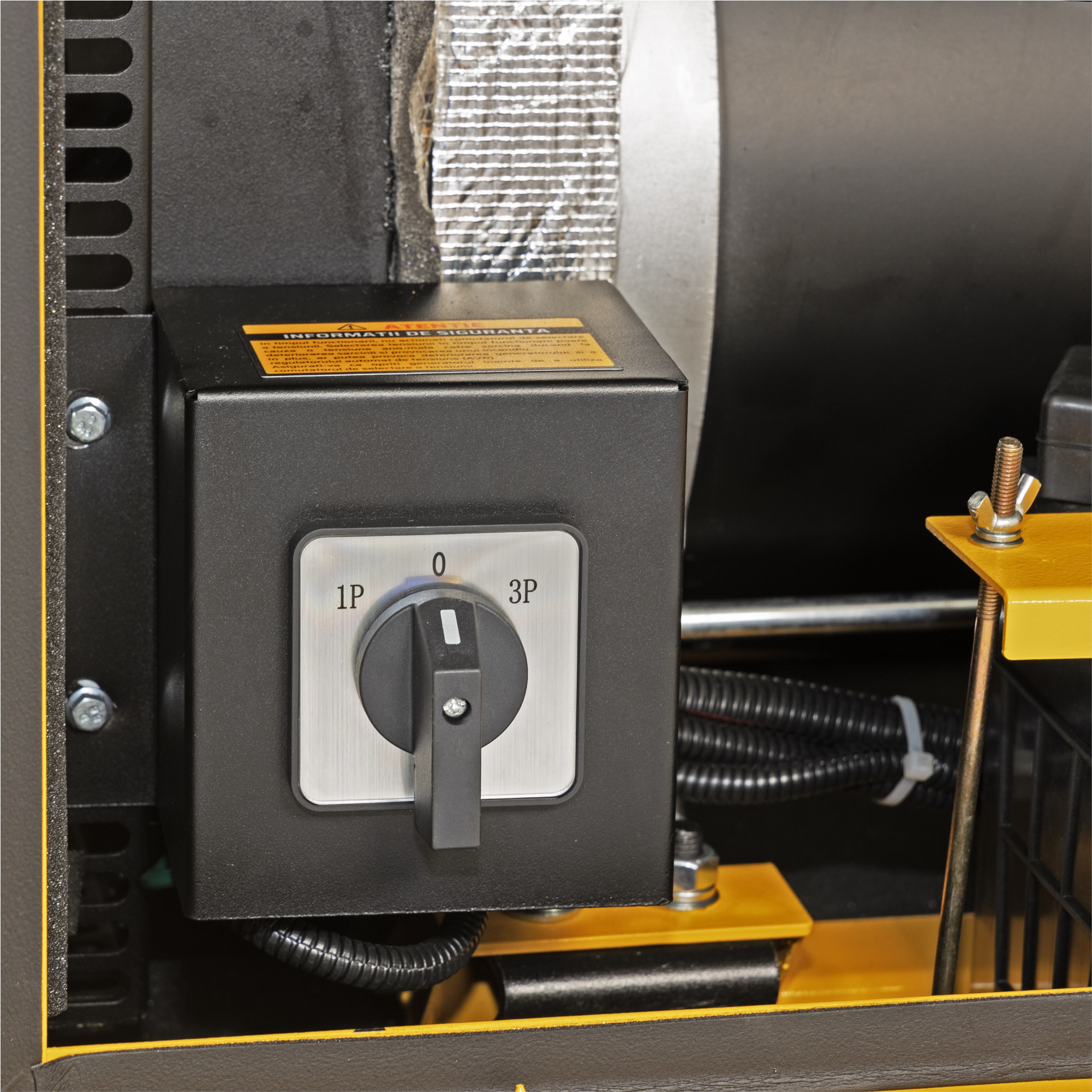 • Două generatoare într-unul singur - comutatorul 1P-0-3P permite trecerea între regim monofazat (230V) și trifazat (400V), cu puterea de 11,5 kW disponibilă atât pe monofazic, cât și pe trifazic.