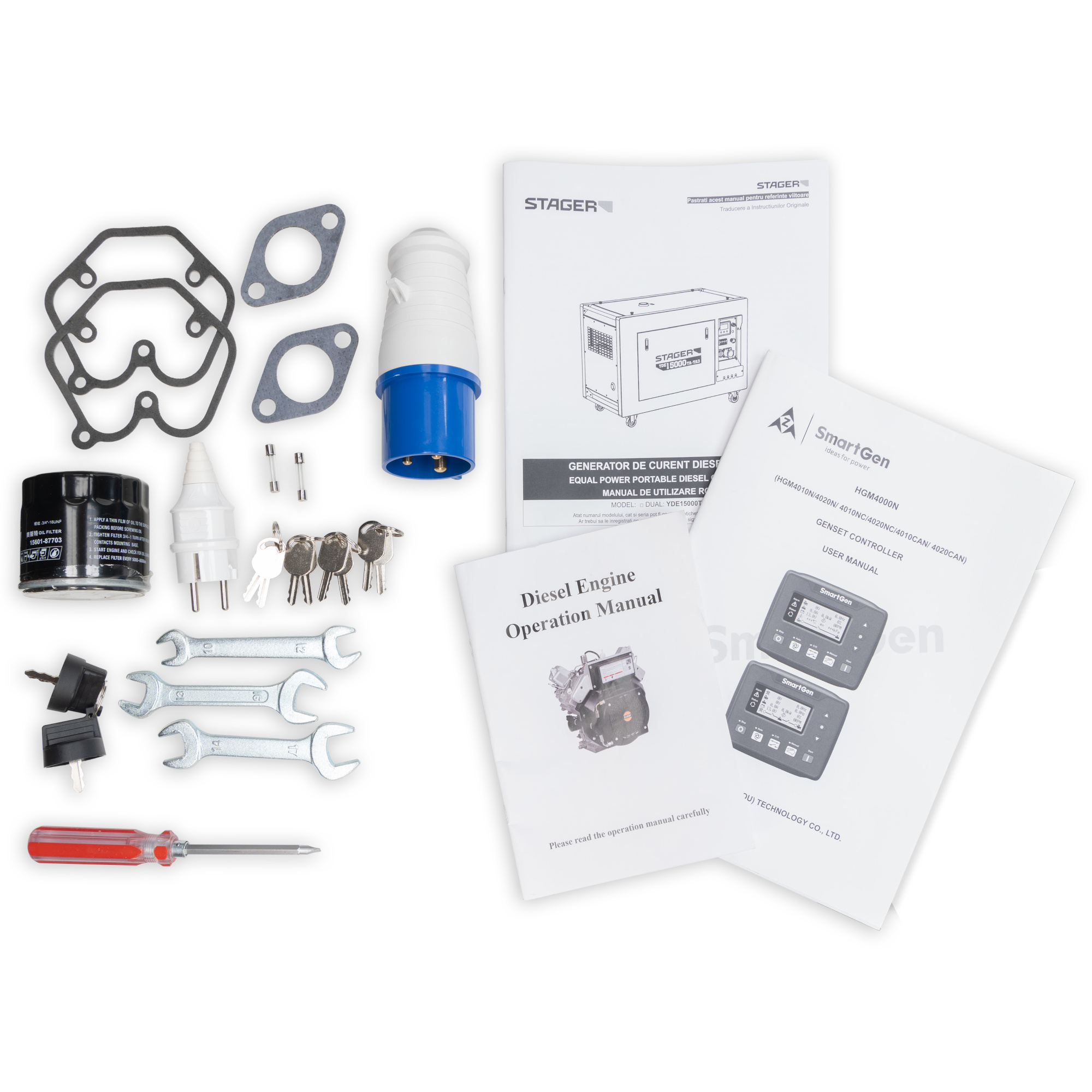 • Set de livrare extins - include filtru de ulei, garnituri de rezervă, ștechere (Schuko și CEE), chei, scule și siguranțe fuzibile de rezervă.