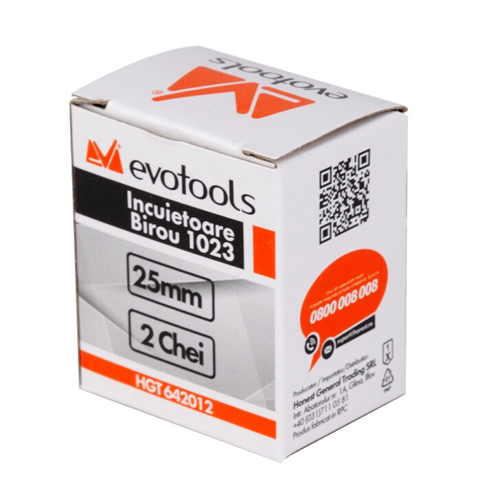 O incuietoare de birou este un dispozitiv care se utilizeaza pentru a bloca o usa sau o fereastra de birou. Este confectionata din aliaj de zinc si alama, cu suprafata placata cu crom, pentru a asigura o rezistenta si o durabilitate crescuta. Aceasta poate fi folosita pentru a proteja bunurile, documentele sau obiectele de valoare din biroul dumneavoastra. Incuietoarea vine cu 2 chei.