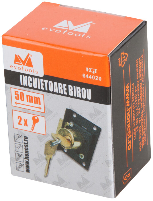 O incuietoare de birou este un dispozitiv care se utilizeaza pentru a bloca o usa sau o fereastra de birou. Este confectionata din alama si otel de foarte buna calitate pentru a asigura o rezistenta si o durabilitate crescuta. Aceasta poate fi folosita pentru a proteja bunurile, documentele sau obiectele de valoare din biroul dumneavoastra. Incuietoarea vine cu 2 chei.