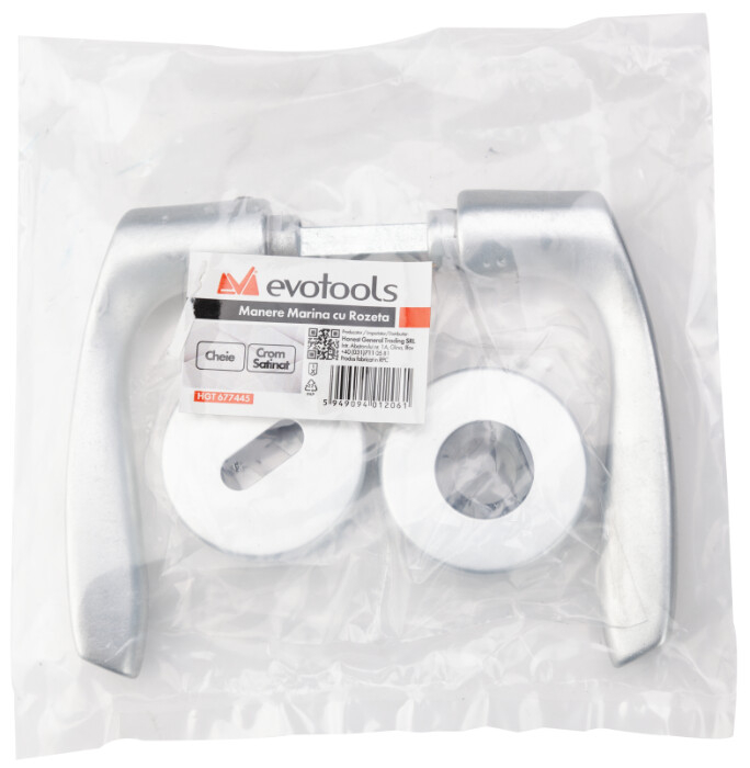 Manerele sunt confectionate din aluminiu, avand axul de antrenare confectionat din otel. Pot fi utilizate atat pentru usile de interior cat si pentru cele de exterior. Se potrivesc pentru usile cu grosimea cuprinsa inre 30-45 mm. Instalarea manerului se face usor, cu ajutorul suruburilor din pachet. Manerul este conceput pentru a rezista o perioada indelungata. Finisarea crom satinata ii ofera un aspect placut si modern. Pachetul contine toate piesele necesare pentru montare.