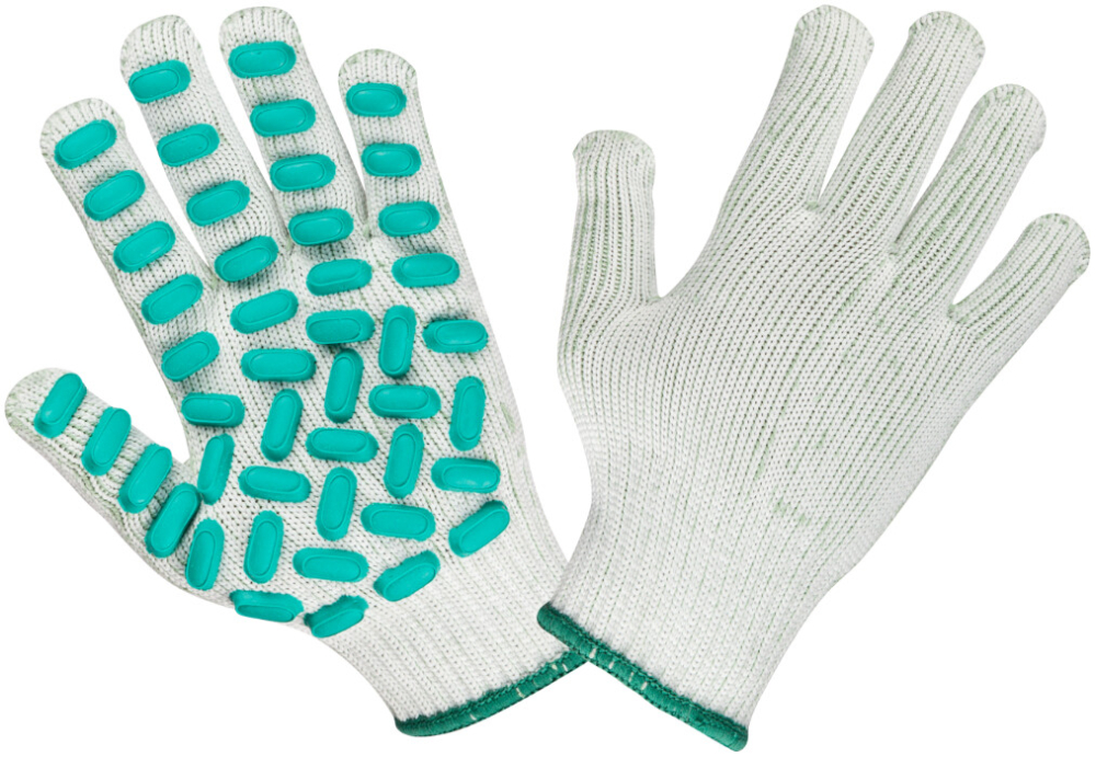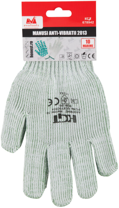 Comode si usoare, manusile anti-vibratii, sunt fabricate tricot din amestec de bumbac si poliester si pernute anti-vibratii din latex pe palma. Fibrele de bumbac vor absorbi perfect transpiratia, iar cele de poliester vor da o rezistenta mai mare in timp a materialului. Fara cusaturi interioare, se muleaza perfect pe mana iar manseta elastica nu lasa praful sa patrunda in interior.