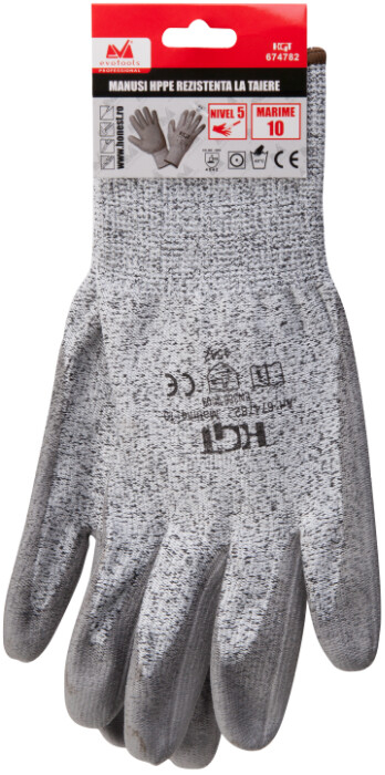 Comode si usoare, manusile de protectie din HPPE impregnate cu poliuretan, fara cusaturi interioare, asigura dexteritate maxima si confort in utilizarea zilnica. Confera rezistenta buna la taiere, se muleaza perfect pe mana iar manseta elastica nu lasa praful si murdaria sa patrunda in interiorul manusii.