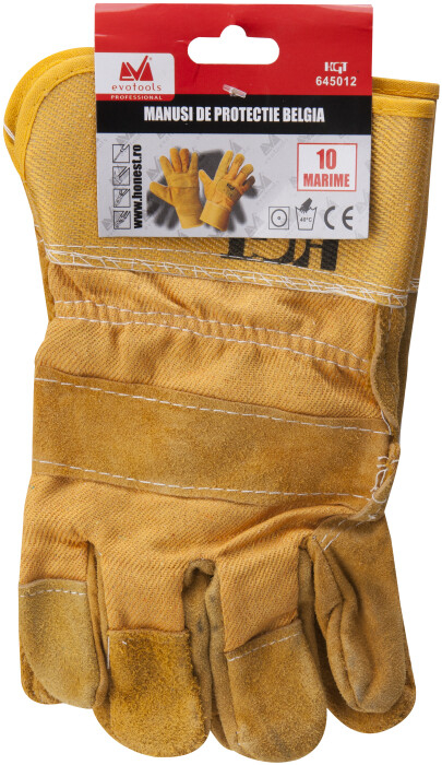Comode si usoare,manusile de protectie realizate din piei de bovine cu fata presata in combinatie cu tesatura textila, asigura dexteritate maxima si confort in utilizarea zilnica.Protectia este asigurata in orice zona a manusii.