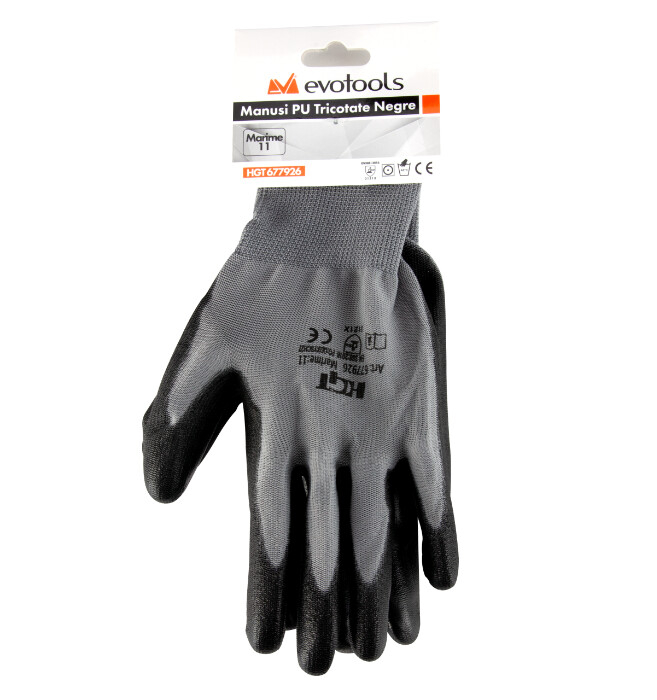 Comode si usoare, manusile de protectie tricotate din nylon cu palma si degetele acoperite partial cu un strat subtire de poliuretan, fara cusaturi interioare, asigura dexteritate maxima si confort in utilizarea zilnica. Se muleaza perfect pe mana si confera o buna protectie mecanica. Manseta elastica nu lasa praful si murdaria sa patrunda in interiorul manusii.