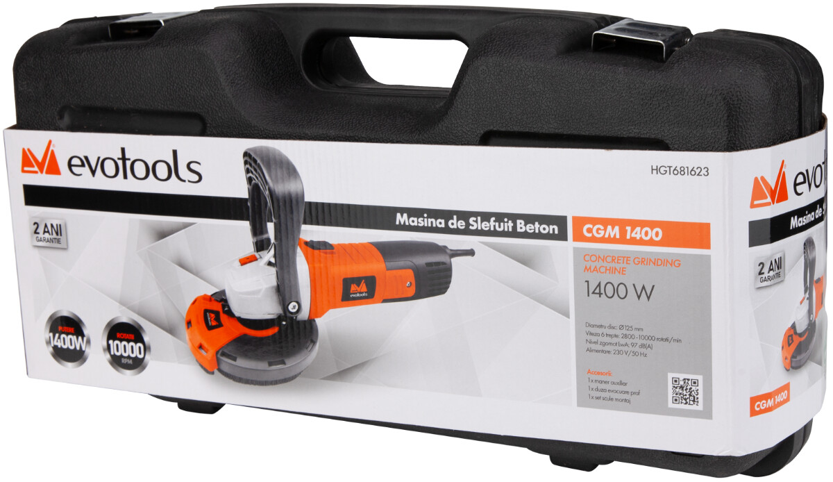 Masina de Slefuit Beton EPTO CGM 1400W EvoTools vine echipata cu un motor puternic de 1400W intr-o carcasa robusta, cu un design ergonomic si o greutate redusa pentru un mod de lucru placut.