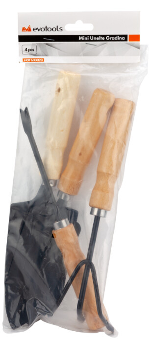 Acest set de mini unelte pentru gradina este alegerea ideala pentru intretinerea gardinii dumneavoastra, fiindu-va de un mare ajutor. Uneltele au lama confectionata din otel acoperit cu un strat de vopsea anticoroziv si manerul confectionat din lemn de esenta tare lacuit.