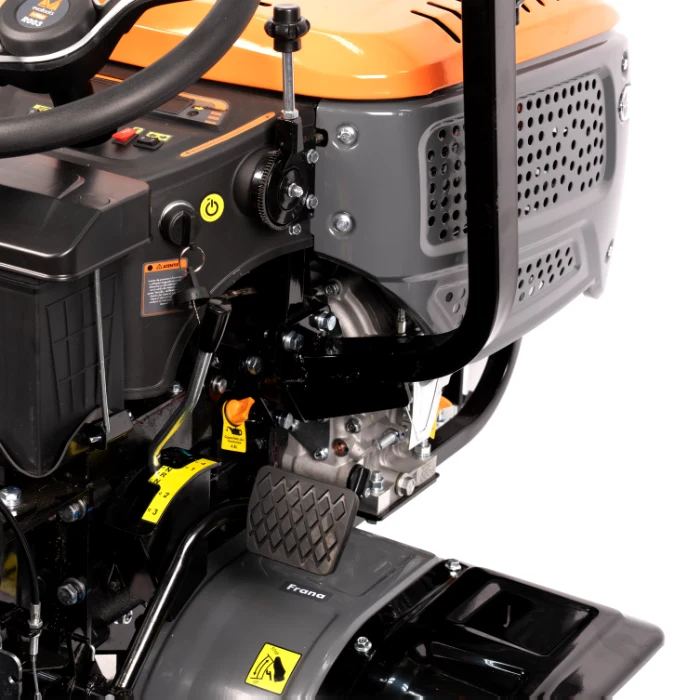 Pentru siguranta si confort, minitractorul este dotat cu scaun reglabil, centura de siguranta, cadru ROPS, oglinzi retrovizoare, sistem de franare eficient si avertizare acustica.