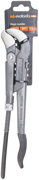 Marca Evotools Professional reprezinta gama de scule si unelte destinata micilor mesteri, avand o calitate superioara ceea ce le face a fi destinate uzului semi-profesional. Mopsul Suedez EvoTools e ste un instrument specializat cu o constructie distinctiva, cunoscut pentru capacitatea sa de a strange sau a prinde obiecte, cu o precizie si o forta crescuta. Specificatii: Este confectionat din Crom-Vanadiu, tratat termic, avand duritatea cuprinsa intre 52-56 HRC. Falcile in forma de "S", reglate la 45 de grade si dintarea realizata in sens contrar directiei de rasucire, va ofera o prindere ferma fara a exista riscul de aluncare. Acest tip de cleste este ideal pentru a fi folosit in industria instalatilor, dar si in alte domenii, la strangerea si prinderea pieselor de lucru cu suprafata plata sau rotunda.