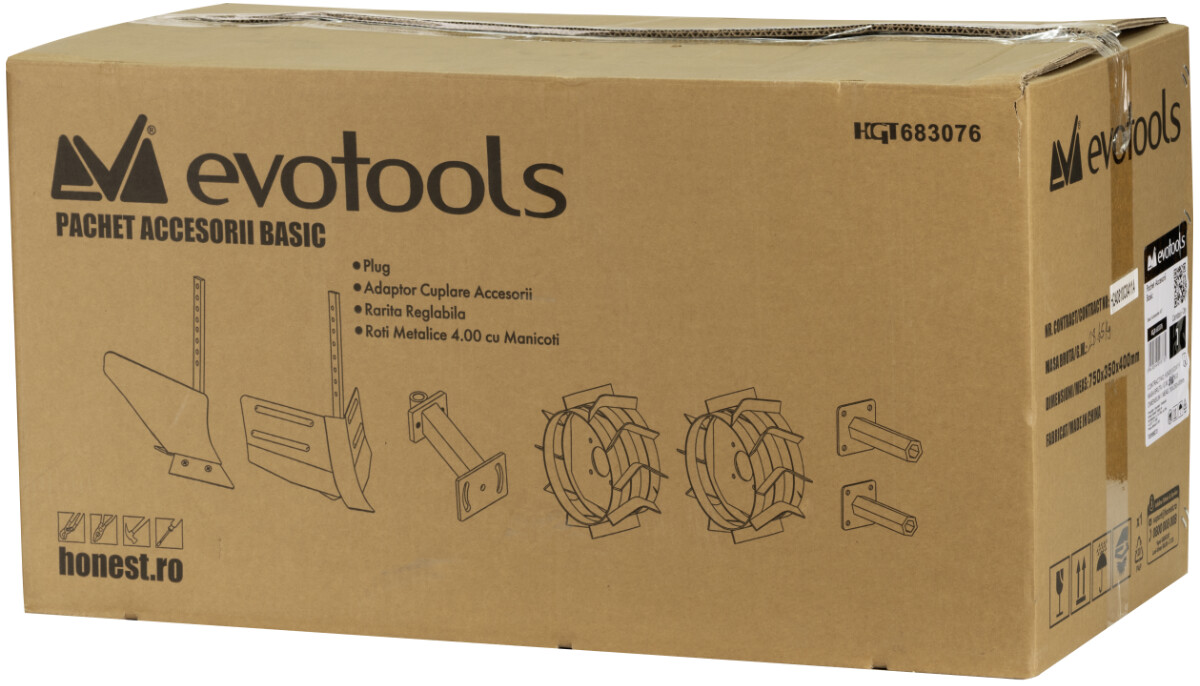 Pachet Accesorii Basic Motosapa/Motocultor (Plug, Adaptor Cuplare Accesorii, Rarita Reglabila, Roti Metalice 4.00 cu Manicoti)