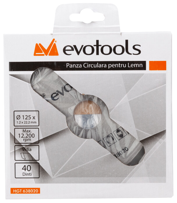 Panza circulara VIDIA pentru lemn EvoTools este confectionata din otel carbon, tratat termic, cu duritatea de 46-49 HRC. Pe fiecare dinte este lipita o pastila VIDIA cu duritate cuprinsa intre 88-89 HRC. Datorita pastilelor vidia fixate pe dinti, puteti taia cu usurinta materiale lemnoase, obtinand o taietura "curata".