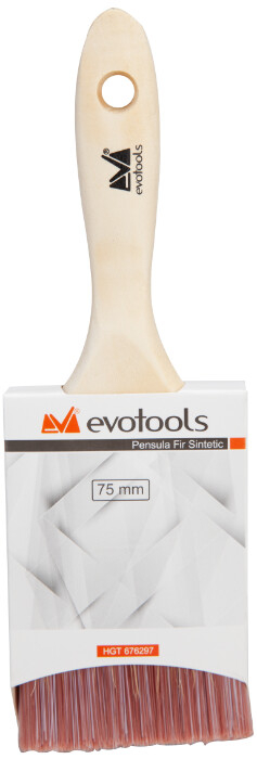 O pensula de vopsit este un instrument esential folosit pentru aplicarea vopselei pe o suprafata. Aceasta pensula are o structura specifica, proiectata pentru a aplica uniform vopseaua pe suprafata dorita. Firele de vopsit sunt confectionate din materiale sintetice ( 70% fire sintetice roz, 20% fire sintetice albe, 10% fire scurte albe amestecate), fiind fixate intr-un maner din lemn care asigura o priza optima si un nivel inalt de confort in timpul utilizarii. Banda metalica ofera o buna fixare a perilor in maner, neexistand riscul ca acestia sa se desprinda in timpul utilizarii si sa ajunga in vopsea. Este instrumentul perfect pentru a lucra cu precizie si usurinta in proiectele din gospodaria dumneavoastra.