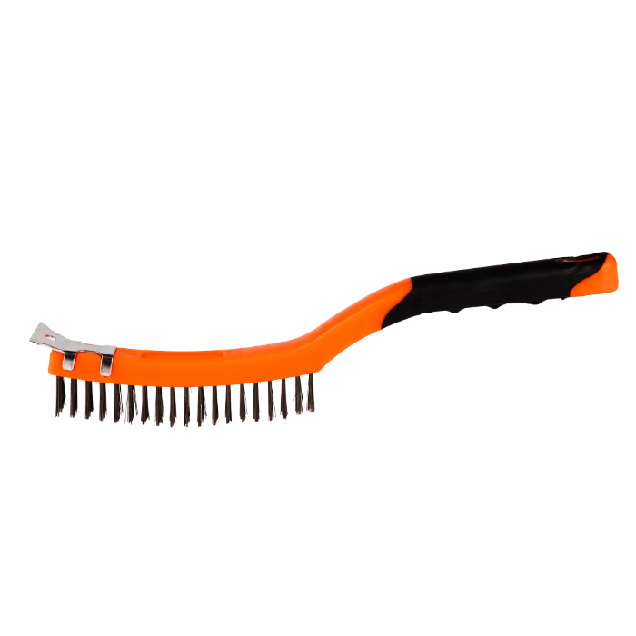 Peria de sarma din otel negru, cu maner din plastic in doua culori, este potrivita pentru curatarea eficienta a suprafetelor. Firele de 0,32 mm asigura o actiune buna fara a deteriora materialul, iar racleta integrata ajuta la indepartarea murdariei mai persistente. Manerul din plastic ofera o prindere comoda si usor de manevrat.
