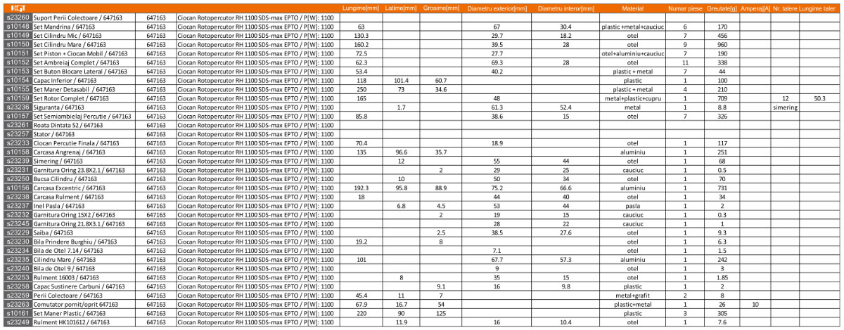 Piese de schimb pentru ciocan rotopercutor PS RH 1100 SDS-MAX 647163