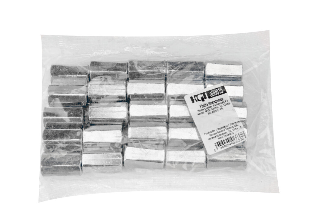 O piulita de cuplare hexagonala este o piesa de fixare cu filet interior care se foloseste de obicei cu un surub sau un bolt pentru a conecta doua sau mai multe piese. Este utilizata in subansamble impreuna cu suruburi, bolturi sau saibe de acelasi diametru pentru fixarea diverselor elemente si detalii in industria constructoare de masini si constructii. Acest tip de piulita, datorita rezistentei sale ridicate, se dovedeste a fi o alegere durabila si fiabila in aplicatii variate. Este utilizata in constructii, mecanica si in alte domenii unde o conexiune sigura si rezistenta este esentiala.