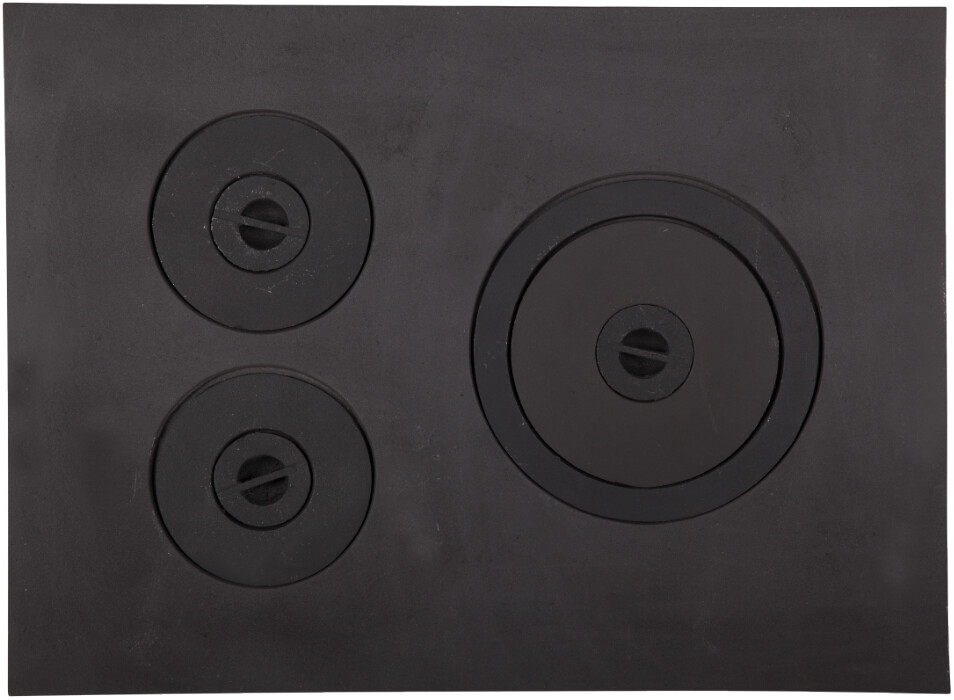 Dimensiuni de montaj (Lxl mm): 585x420 Plita pentru sobe traditionale, confectionata din fonta, cu trei ochiuri cu diametrul maxim de 235 mm Durabilitate ridicata